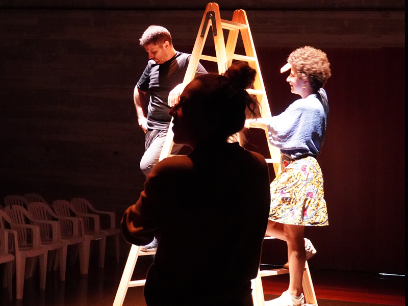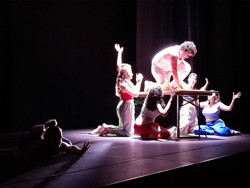 Partim de la presència i l’escolta activa per explorar l’escena amb el cos com a principal mitjà d’expressió. El moviment no acompanya ni decora, sinó que construeix significat i estructura on l’acció física esdevé llenguatge.